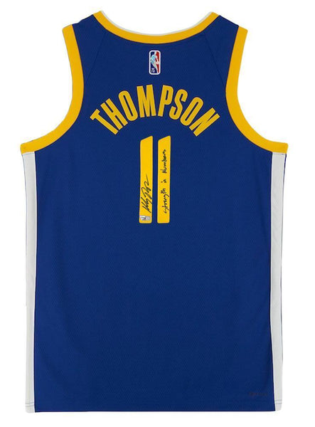 This nike swingman jersey has been personally hand-signed by guard klay thompson with the inscription "strength in numbers." it is officially licensed by the national basketball association and comes with an individually numbered tamper-evident hologram from fanatics authentic. to ensure authenticity, the hologram can be reviewed online. this process helps to ensure that the product purchased is authentic and eliminates any possibility of duplication or fraud.made in the usapersonally autographed by klay thompsonfanatics authentic presented by mounted memoriesincludes tamper-evident hologram to ensure authenticityofficially licensed this product is guaranteed authentic and includes a fanatics certificate of authenticity and an accompanying tamper-evident fanatics hologram.