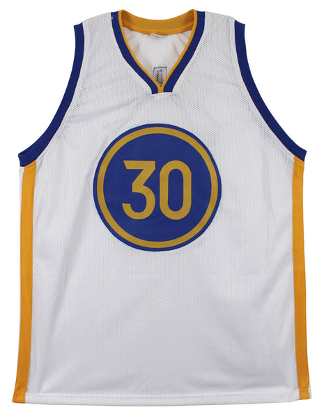 This Autographed White Pro Style Jersey has been Personally Signed by Stephen Curry of the Golden State Warriors. This item is 100% Authentic to include a Certificate of Authenticity (COA) / hologram by JSA. We conducted an autograph signing with Stephen Curry where multiples of the same item were signed. While the photographs are representative of this item, the size, placement and strength of the signature may vary. Each item is hand signed, therefore, each autograph is unique. This item can be verified through JSA. This is a X-Large sized, non-branded, custom-stitched Jersey.