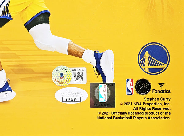 This is a 16x20 Photo that has been hand signed by Stephen Curry. This item has been certified authentic by Beckett Authentication (BAS) and comes with their tamper-proof QR Code sticker and matching full page certificate of authenticity.