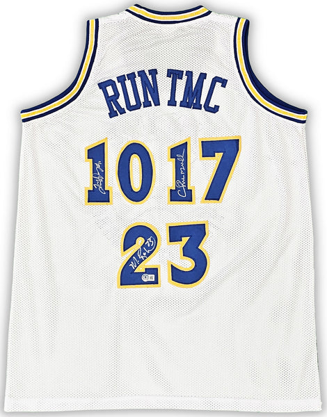 This is a White Jersey that has been hand signed by Chris Mullin, Tim Hardaway & Mitch Richmond. This jersey is specially made without any recognizable brand. It is approximately sized as XL and features well-stitched name and numbers. This item has been witnessed and certified authentic by Beckett Authentication (BAS) and comes with their tamper-proof witness sticker. Beckett Authentication has recently changed their physical certificate card policy where they no longer match their tamper-proof sticker with a physical certificate. A certificate can be printed on Beckett's website for the matching authentication number.