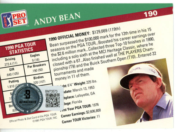 The number in the listing title is just an inventory sku for our records and is not the authentication number. This is the exact item that you will receive so please see pictures for condition. This is a trading card that was personally autographed by Andy Bean. Includes a certificate of authenticity from Beckett Authentication Services (BAS) and Denver Autographs.FREE SHIPPING within the USA on orders over $10!