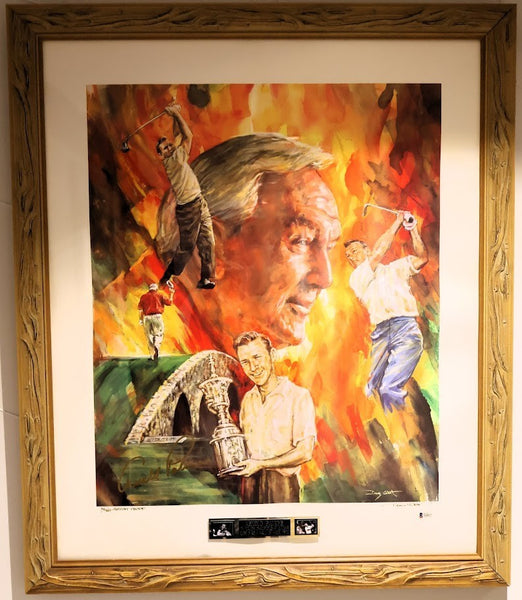 Own a piece of golf history with this authentic Arnold Palmer autographed 16x20 painting featuring "The King" himself. This premium collectible combines exquisite artistry with the legendary golfer's signature in a professionally framed presentation. Product Details:* Authentic Arnold Palmer signature on 16x20 painting* Stunning artistic portrayal professionally framed* Beckett Certificate of Authenticity included* Features golf's most charismatic champion* Ready to display in your home, office, or sports room Celebrate the legacy of Arnold Palmer, the charismatic champion who brought golf to the masses and inspired generations. This museum-quality art piece honors "The King" and makes an exceptional addition to any golf memorabilia collection.