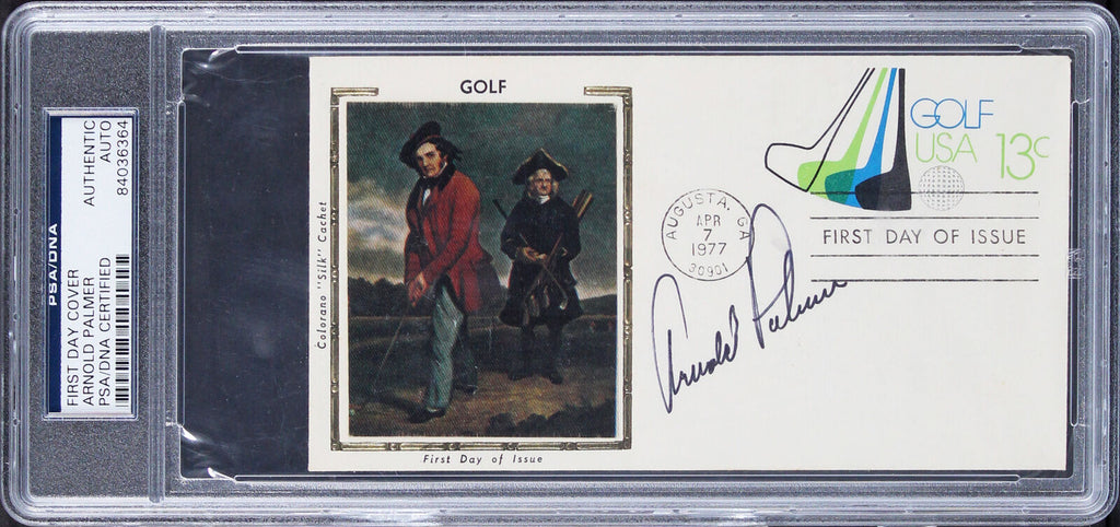 This Autographed Postmarked April 7, 1977 3.5x6.5 First Day Cover Envelope has been Personally Signed by Arnold Palmer. This item is 100% Authentic, it comes slabbed and authenticated by PSA/DNA. The authenticity can be verified on Professional Sports Authenticator website.