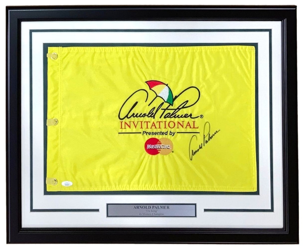 Featured is an Arnold Palmer signed Arnold Palmer Invitational golf flag. This flag has been hand signed by Palmer and comes with the JSA hologram and letter of authenticity. This flag has been professionally framed and matted and is approximately 22x27. This flag would make a great addition to any sports memorabilia collection! SPECIFICATIONS Autographed By: Arnold Palmer Team: Sport: Authentication: James Spence Authentication (JSA)