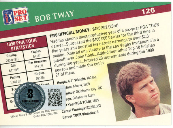 The number in the listing title is just an inventory sku for our records and is not the authentication number. This is the exact item that you will receive so please see pictures for condition. This is a trading card that was personally autographed by Bob Tway. Includes a certificate of authenticity from Beckett Authentication Services (BAS) and Denver Autographs.FREE SHIPPING within the USA on orders over $10!