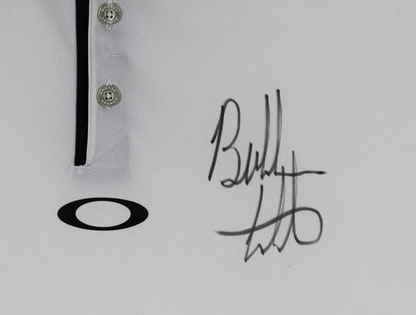 This Autographed Grey Oakley Polo Shirt has been Personally Signed by Bubba Watson. This item is 100% Authentic to include a hologram by Beckett Authentication Services. This item will come with an affixed Beckett Authentication Services (BAS) authentication sticker, which includes a scannable QR code to verify authenticity. Please note that Beckett no longer provides serial-numbered COA cards, and the attached BAS sticker will serve as the complete authentication for this item. The authenticity can be verified on Beckett Authentication Services website.