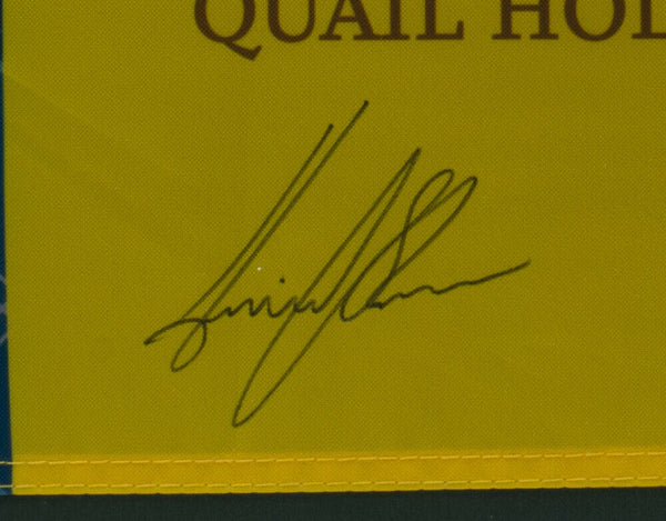 Featured is a Henrik Stenson signed and framed yellow 2017 Quail Hollow golf flag. This flag was hand signed by Henrik Stenson and authenticated by JSA authentication services. Included with the flag is a JSA hologram and certificate of authentication. Brand new professional framing featuring double matting and engraved nameplate. The frame measures approximately 20x30 in total size, and it is ready for display. This item would make a great addition to any sports memorabilia collection.. SPECIFICATIONS Autographed By: Team: Sport: Golf-PGA Authentication: James Spence Authentication (JSA)