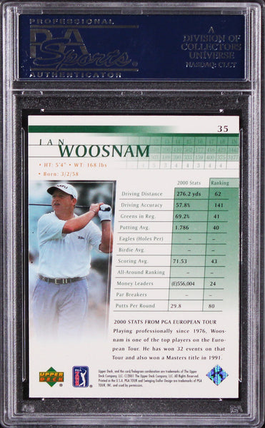 This Autographed 2001 Upper Deck Golf #35 Card has been Personally Signed by Ian Woosnam. This item is 100% Authentic, it comes slabbed and authenticated by PSA/DNA. The authenticity can be verified on Professional Sports Authenticator website.