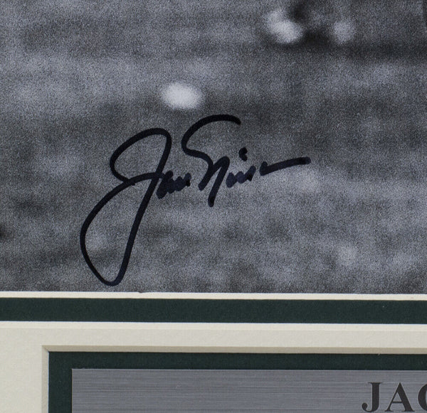 Featured is a Jack Nicklaus signed framed 8x10 PGA golf photo. This photo was hand signed by Jack Nicklaus and authenticated by JSA authentication services. Included with the photo is a JSA hologram and certificate of authentication. This frame measures approximately 11x14 in total size, and is ready for display. This item would make a great addition to any sports memorabilia collection!. SPECIFICATIONS Autographed By: Nicklaus Team: Sport: Golf-PGA Authentication: James Spence Authentication (JSA)