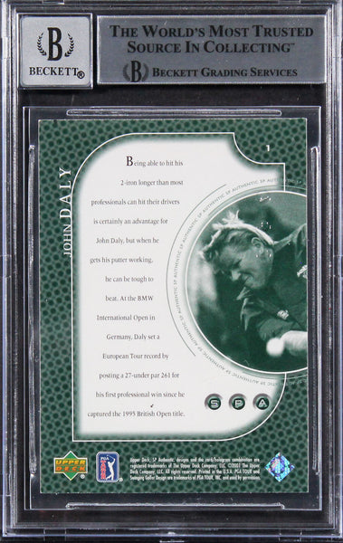 This Autographed Auto Graded Gem Mint 10 2001 SP Authentic Preview #1 Card has been Personally Signed by John Daly. This item is 100% Authentic, it comes slabbed and authenticated by Beckett Authentication Services. The authenticity can be verified on Beckett Authentication Services website.