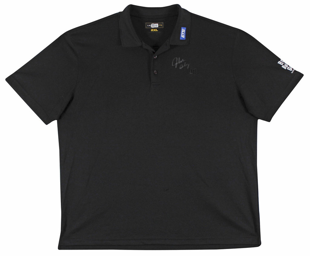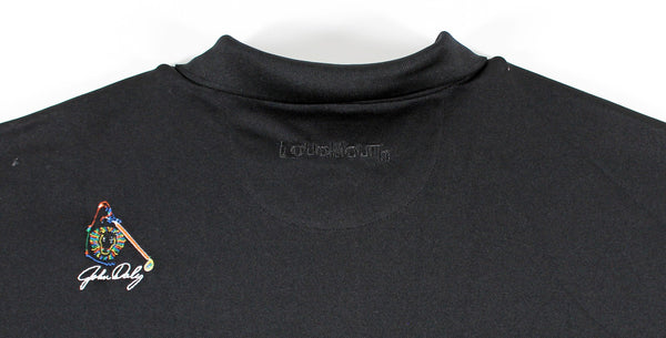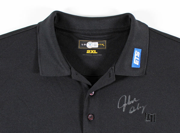 This Autographed Match Worn Black Loudmouth Rock Bottom Golf Polo Shirt has been Personally Signed by John Daly. This item is 100% Authentic to include a hologram by Beckett Authentication Services. This item will come with an affixed Beckett Authentication Services (BAS) authentication sticker, which includes a scannable QR code to verify authenticity. Please note that Beckett no longer provides serial-numbered COA cards, and the attached BAS sticker will serve as the complete authentication for this item. The authenticity can be verified on Beckett Authentication Services website. This is a XX-Large sized Shirt. This Match Worn Black Loudmouth Rock Bottom Golf Polo shirt has been worn by John Daly, and comes with a letter of Authenticity from John Daly certifying this is match worn & provenance of the item coming from his personal collection.