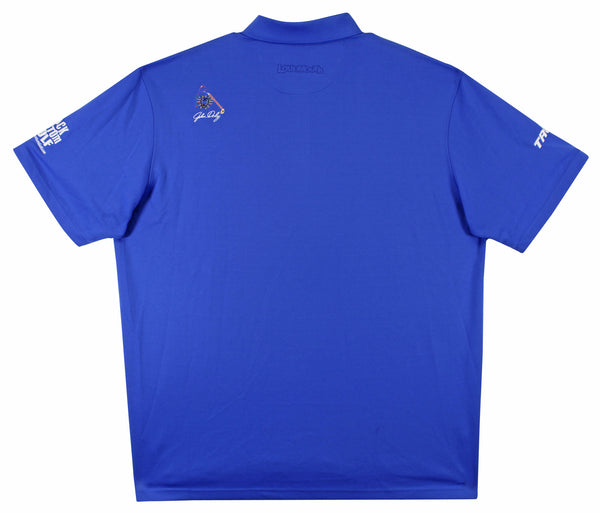 This Autographed Match Worn Blue Loudmouth Mark Christopher Pitch & Play Rock Bottom Trump ETS Golf Polo Shirt has been Personally Signed by John Daly. This item is 100% Authentic to include a hologram by Beckett Authentication Services. This item will come with an affixed Beckett Authentication Services (BAS) authentication sticker, which includes a scannable QR code to verify authenticity. Please note that Beckett no longer provides serial-numbered COA cards, and the attached BAS sticker will serve as the complete authentication for this item. The authenticity can be verified on Beckett Authentication Services website. This is a XX-Large sized Shirt. This Match Worn Blue Loudmouth Mark Christopher Pitch & Play Rock Bottom Trump ETS Golf Polo shirt has been worn by John Daly, and comes with a letter of Authenticity from John Daly certifying this is match worn & provenance of the item coming from his personal collection.