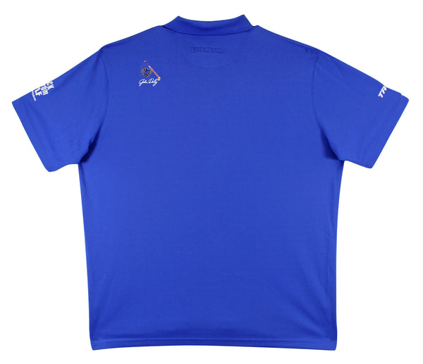This Autographed Match Worn Blue Loudmouth Mark Christopher Pitch & Play ETS Trump Rock Bottom Golf Polo Shirt has been Personally Signed by John Daly. This item is 100% Authentic to include a hologram by Beckett Authentication Services. This item will come with an affixed Beckett Authentication Services (BAS) authentication sticker, which includes a scannable QR code to verify authenticity. Please note that Beckett no longer provides serial-numbered COA cards, and the attached BAS sticker will serve as the complete authentication for this item. The authenticity can be verified on Beckett Authentication Services website. This is a XX-Large sized Shirt. This Match Worn Blue Loudmouth Mark Christopher Pitch & Play ETS Trump Rock Bottom Golf Polo shirt has been worn by John Daly, and comes with a letter of Authenticity from John Daly certifying this is match worn & provenance of the item coming from his personal collection.