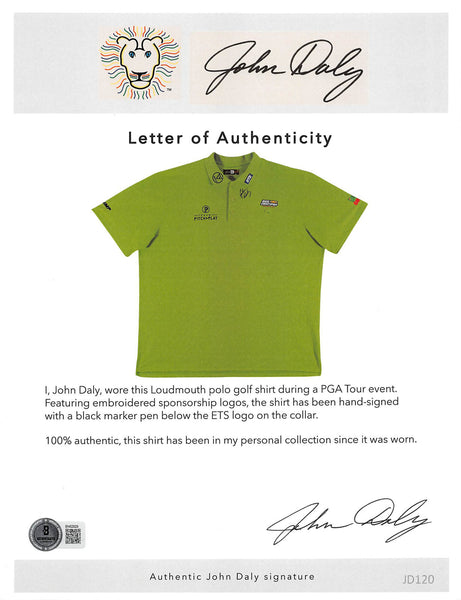 John Daly Authentic Signed Match Worn Green Loudmouth Polo Shirt BAS #BK84764