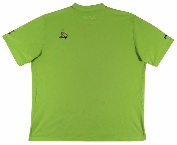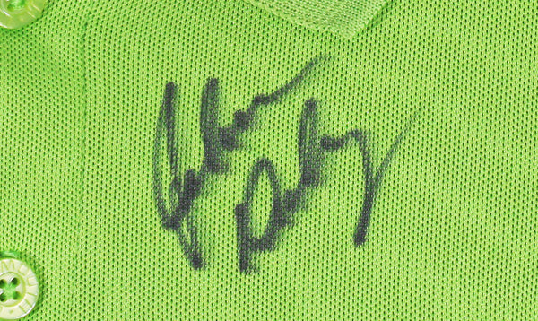 This Autographed Match Worn Green Loudmouth Mark Christopher Pitch & Play Trump ETS Rock Bottom Golf Polo Shirt has been Personally Signed by John Daly. This item is 100% Authentic to include a hologram by Beckett Authentication Services. This item will come with an affixed Beckett Authentication Services (BAS) authentication sticker, which includes a scannable QR code to verify authenticity. Please note that Beckett no longer provides serial-numbered COA cards, and the attached BAS sticker will serve as the complete authentication for this item. The authenticity can be verified on Beckett Authentication Services website. This is a XXX-Large sized Shirt. This Match Worn Green Loudmouth Mark Christopher Pitch & Play Trump ETS Rock Bottom Golf Polo shirt has been worn by John Daly, and comes with a letter of Authenticity from John Daly certifying this is match worn & provenance of the item coming from his personal collection.