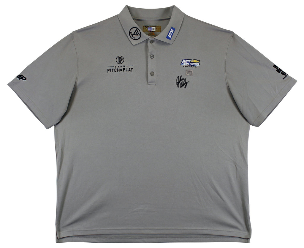 This Autographed Match Worn Grey Loudmouth Mark Christopher Team Pitch & Play Rock Bottom Golf Trump Polo Shirt has been Personally Signed by John Daly. This item is 100% Authentic to include a hologram by Beckett Authentication Services. This item will come with an affixed Beckett Authentication Services (BAS) authentication sticker, which includes a scannable QR code to verify authenticity. Please note that Beckett no longer provides serial-numbered COA cards, and the attached BAS sticker will serve as the complete authentication for this item. The authenticity can be verified on Beckett Authentication Services website. This is a XX-Large sized Shirt. This Match Worn Grey Loudmouth Mark Christopher Team Pitch & Play Rock Bottom Golf Trump Polo shirt has been worn by John Daly, and comes with a letter of Authenticity from John Daly certifying this is match worn & provenance of the item coming from his personal collection.