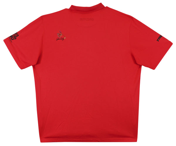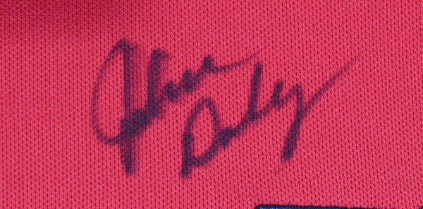 This Autographed Match Worn Red Loudmouth Mark Christopher Rock Bottom Trump Golf Polo Shirt has been Personally Signed by John Daly. This item is 100% Authentic to include a hologram by Beckett Authentication Services. This item will come with an affixed Beckett Authentication Services (BAS) authentication sticker, which includes a scannable QR code to verify authenticity. Please note that Beckett no longer provides serial-numbered COA cards, and the attached BAS sticker will serve as the complete authentication for this item. The authenticity can be verified on Beckett Authentication Services website. This is a XX-Large sized Shirt. This Match Worn Red Loudmouth Mark Christopher Rock Bottom Trump Golf Polo shirt has been worn by John Daly, and comes with a letter of Authenticity from John Daly certifying this is match worn & provenance of the item coming from his personal collection.