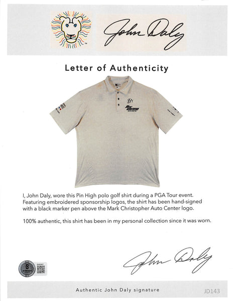 John Daly Authentic Signed Match Worn White Pin High Polo Shirt BAS #BK84743