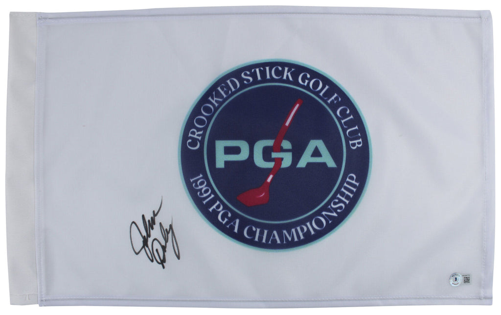 This Autographed PGA Championship Pin Flag has been Personally Signed by John Daly. This item is 100% Authentic to include a hologram by Beckett Authentication Services. This item will come with the new Beckett Authentication hologram that has a scannable QR code rather than the traditional COA. We conducted an autograph signing with John Daly where multiples of the same item were signed. While the photographs are representative of this item, the size, placement and strength of the signature may vary. Each item is hand signed, therefore, each autograph is unique. This item can be verified through BAS.