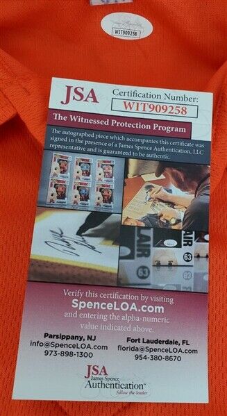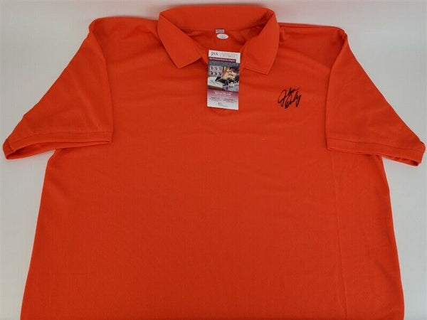 This autographed golf polo has been personally hand-signed by golfer, John Daly. This autograph is certified by James Spence Authentication's (JSA) Witnessed Protection Program. That means that a JSA representative was present when this item was signed. It comes with the numbered hologram and matching Certificate of Authenticity.