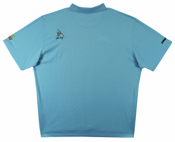 This Autographed Match Worn Baby Blue Loudmouth Mark Christopher Pitch & Play ETS Trump Rock Bottom Golf Polo Shirt has been Personally Signed by John Daly. This item is 100% Authentic to include a hologram by Beckett Authentication Services. This item will come with an affixed Beckett Authentication Services (BAS) authentication sticker, which includes a scannable QR code to verify authenticity. Please note that Beckett no longer provides serial-numbered COA cards, and the attached BAS sticker will serve as the complete authentication for this item. The authenticity can be verified on Beckett Authentication Services website. This is a XX-Large sized Shirt. This Match Worn Baby Blue Loudmouth Mark Christopher Pitch & Play ETS Trump Rock Bottom Golf Polo shirt has been worn by John Daly, and comes with a letter of Authenticity from John Daly certifying this is match worn & provenance of the item coming from his personal collection.