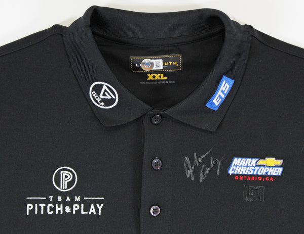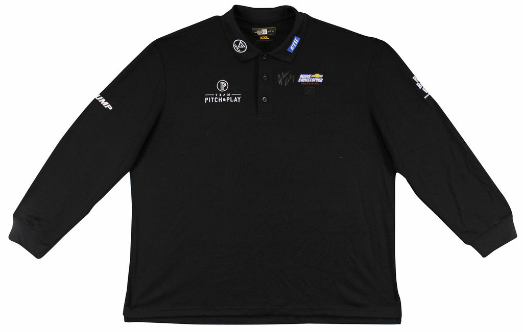 This Autographed Match Worn Black Long sleeved Loudmouth Team Pitch & Play Mark Christopher Chevy Trump Rock Bottom Golf Polo Shirt has been Personally Signed by John Daly. This item is 100% Authentic to include a hologram by Beckett Authentication Services. This item will come with an affixed Beckett Authentication Services (BAS) authentication sticker, which includes a scannable QR code to verify authenticity. Please note that Beckett no longer provides serial-numbered COA cards, and the attached BAS sticker will serve as the complete authentication for this item. The authenticity can be verified on Beckett Authentication Services website. This is a XX-Large sized Shirt. This Match Worn Black Long sleeved Loudmouth Team Pitch & Play Mark Christopher Chevy Trump Rock Bottom Golf Polo shirt has been worn by John Daly, and comes with a letter of Authenticity from John Daly certifying this is match worn & provenance of the item coming from his personal collection.