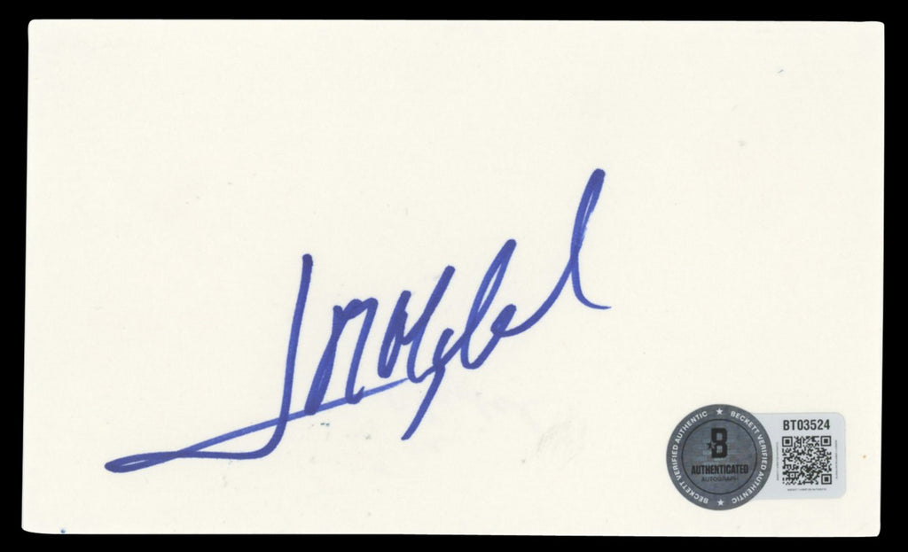 This Autographed 3x5 Index Card has been Personally Signed by Jose Maria Olazabal. This item is 100% Authentic to include a hologram by Beckett Authentication Services. This item will come with an affixed Beckett Authentication Services (BAS) authentication sticker, which includes a scannable QR code to verify authenticity. Please note that Beckett no longer provides serial-numbered COA cards, and the attached BAS sticker will serve as the complete authentication for this item. The authenticity can be verified on Beckett Authentication Services website.
