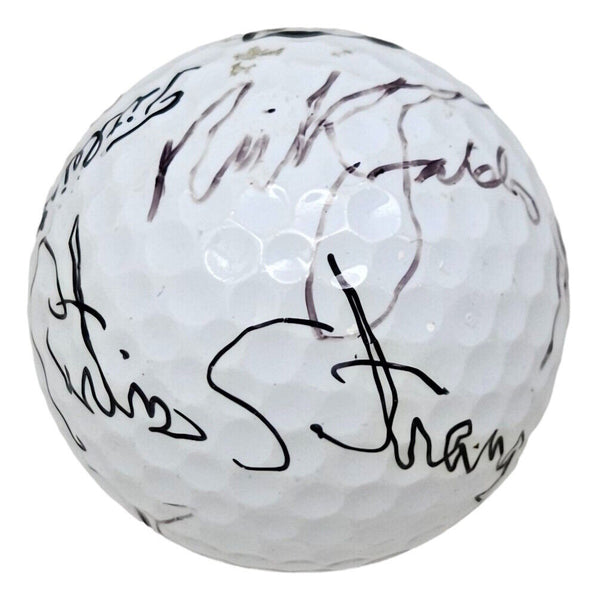 Featured is a Payne Stewart, Nick Faldo, Curtis Strange and Mark Calcavecchia signed Titleist golf ball. This ball has been hand signed by Stewart, Faldo, Strange, and Calcavecchia and comes with the Beckett hologram and letter of authenticity. This ball would make a great addition to any sports memorabilia collection!. SPECIFICATIONS Autographed By: Team: Sport: Golf-PGA Authentication: Beckett Grading Services