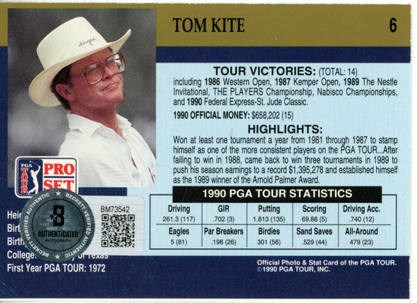 The number in the listing title is just an inventory sku for our records and is not the authentication number. This is the exact item that you will receive so please see pictures for condition. This is a trading card that was personally autographed by Tom Kite. Includes a certificate of authenticity from Beckett Authentication Services (BAS) and Denver Autographs.FREE SHIPPING within the USA on orders over $10!