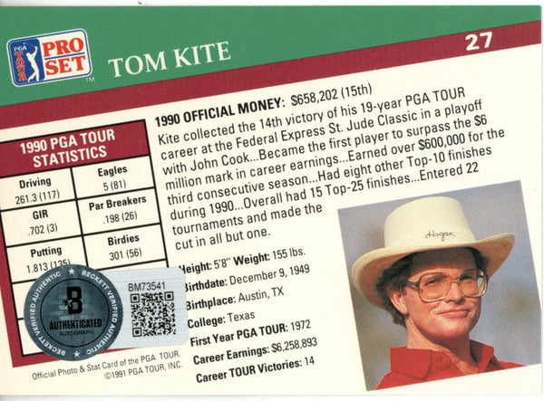 Tom Kite Autographed 1991 Pro Set #27 Trading Card Beckett 44865