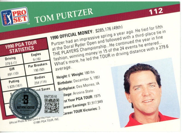 Tom Purtzer Autographed 1991 Pro Set #112 Trading Card Beckett 44888