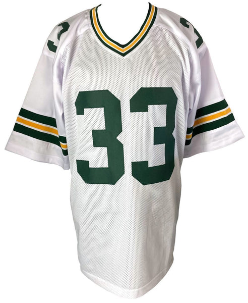 Featured is an Aaron Jones signed custom football jersey. This jersey has been hand signed by Jones and comes with the Beckett hologram and certificate of authenticity. This jersey features professionally sewn letters and numbers and is size XL. This jersey has no team tags or emblems and is intended as a sports collectible. This jersey would make a great addition to any sports memorabilia collection! SPECIFICATIONS Autographed By: Aaron Jones Team: Green Bay Packers Sport: Football Authentication: Beckett Grading Services
