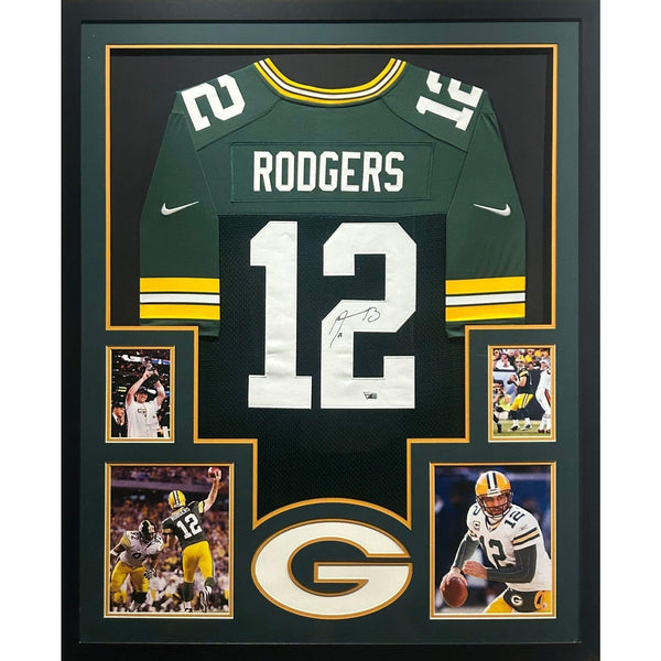 Aaron Rodgers Autographed Signed Framed Green Bay Packers 4P Jersey FANATICS
