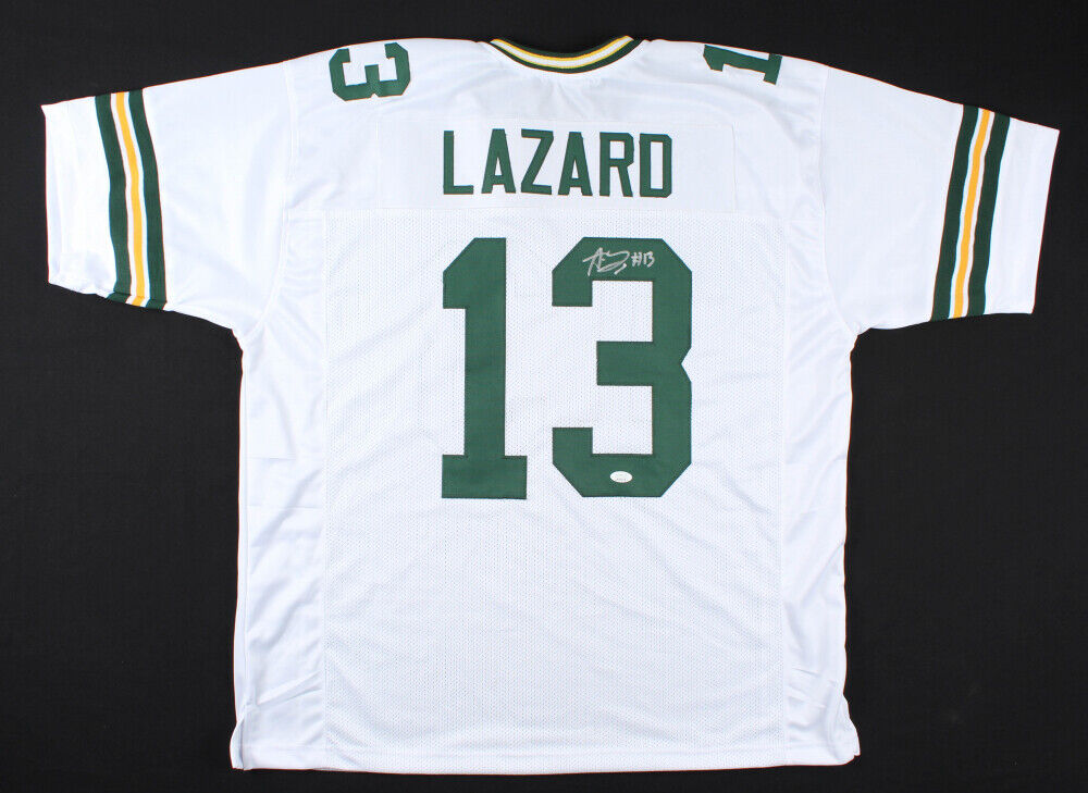 Custom on-field style jersey. Everything is sewn on size, XL. Has been hand-signed by Allen Lazard. The lot / autograph(s) includes an official James Spence Authentication (JSA) hologram and matching COA for authenticity purposes. The signing of this item was witnessed by JSA.Authentication: JSA COA