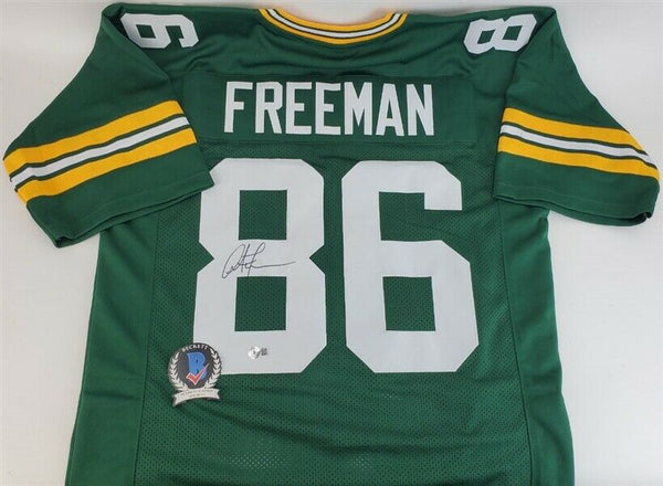 This autographed jersey has been personally hand-signed by Antonio Freeman of the Green Bay Packers. This autograph is certified by Beckett Authentication Services (BAS) Witness Certification. That means that a Beckett representative was present when this item was signed. It comes with the numbered authentication hologram with a QR code that verifies the authentication on the Beckett website.Custom on-field style jerseys are a more affordable option for autograph seekers. These jerseys do not have any brand name or tags and are made in the Philippines. They feature stitched on names and numbers and are made to look very similar to the on-field jerseys that the players wear. These custom jerseys are very commonly used in the memorabilia industry.