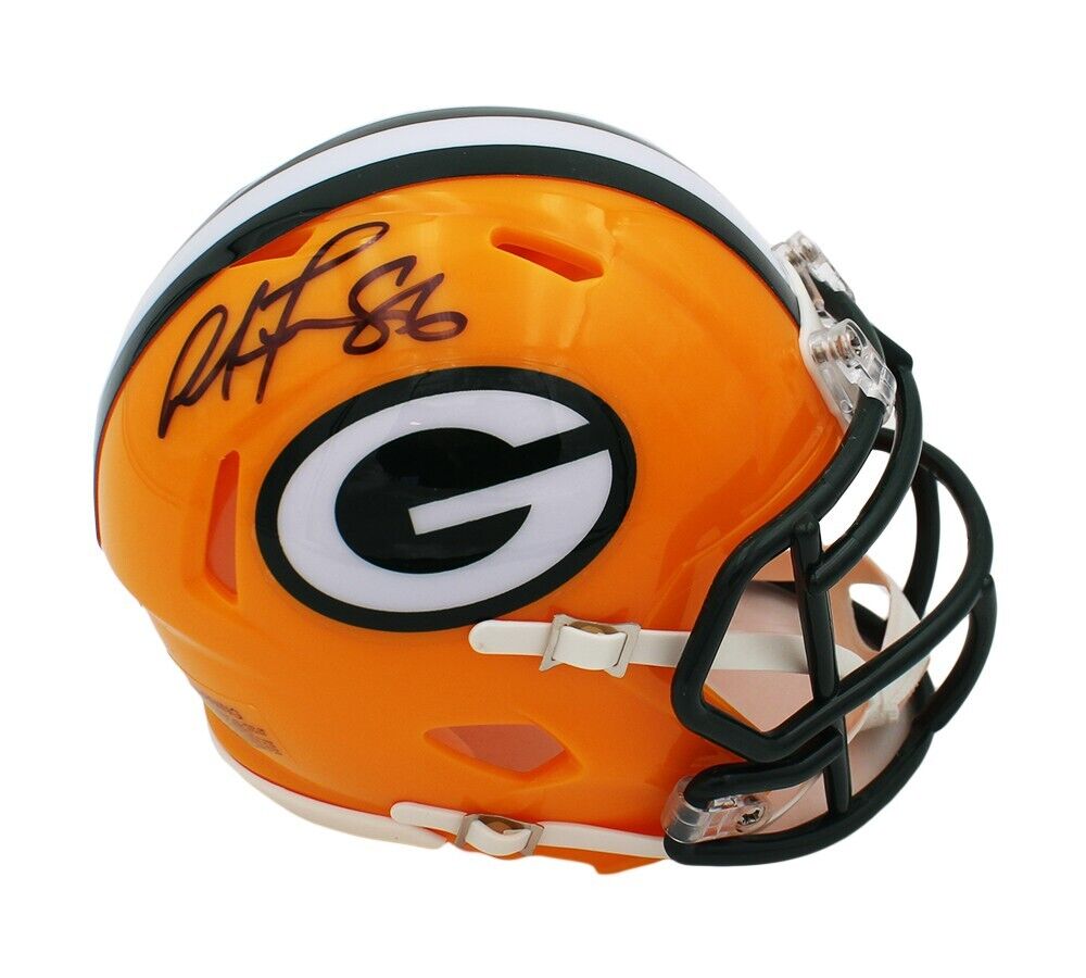 A Green Bay Packers Speed NFL Mini Helmet hand signed by Antonio Freeman. The item and signature are in excellent condition. Antonio Freeman is a former professional American football wide receiver, best known for his time with the Green Bay Packers in the NFL. Freeman played college football at Virginia Tech before being drafted by the Packers in 1995. He became a key player for the Packers during their Super Bowl XXXI victory and earned two Pro Bowl selections. AUTHENTICATION: Your item is tagged with a SmarTag powered by Prova Technology, which gives you digital access to your items authentication records, which includes a proof picture from the signing.