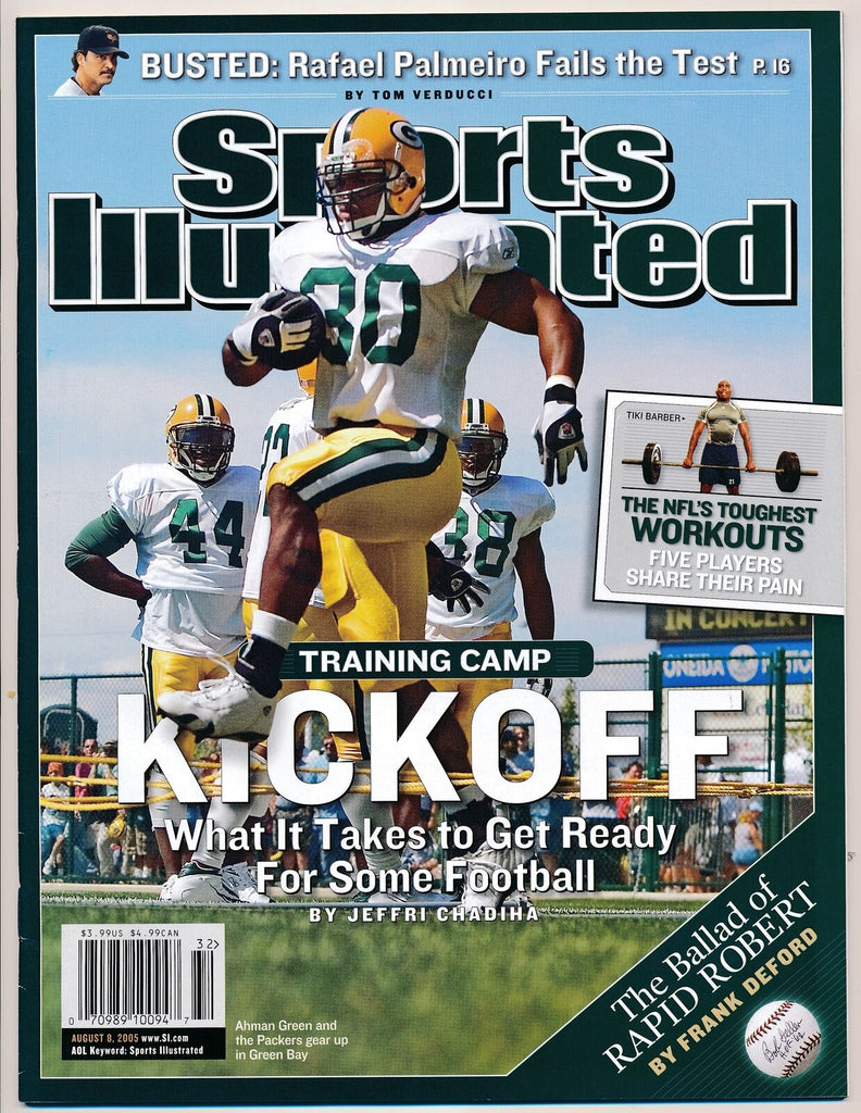 August 8, 2005 ahman green sports illustrated no label newsstand green bay packers. this magazine has no mailing label, and is a newsstand edition!