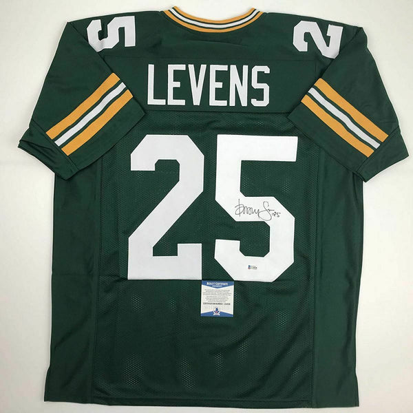 Autographed/Signed DORSEY LEVENS Green Bay Green Football Jersey Beckett BAS COA This is a custom jersey and was not manufactured by or in any manner associated with any professional sports league or manufacturer. This custom jersey carries no professional sports league designation. The item is intended to be an autographed collectible. Reference of team in the title is to allow the purchaser a point of association. The custom jersey displays the name, number and authenticated signature of the player. This item in no way is affiliated with or connected to any professional sports organization. The autograph, as always is guaranteed to be authentic and has been certified as authentic by a third-party, trusted authenticator. Size is XL unless otherwise noted.