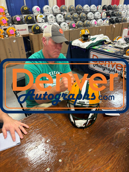 The number in the listing title is just an inventory sku for our records and is not the authentication number. This is a stock photo, unless otherwise noted. This is a Green Bay Packers Full Size Authentic Helmet that was personally autographed by Brett Favre. Includes a certificate of authenticity from Beckett Authentication Services (BAS) and Denver Autographs.