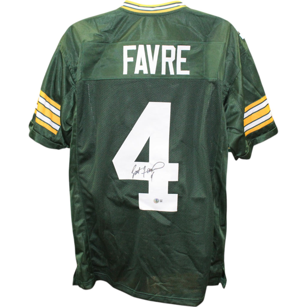 The number in the listing title is just an inventory sku for our records and is not the authentication number. This is a stock photo, unless otherwise noted. This is a Pro Style Size XL Green Jersey with sewn on numbers that was personally autographed by Brett Favre. Includes a certificate of authenticity from Beckett Authentication Services (BAS) and Denver Autographs.FREE SHIPPING within the USA on orders over $10!
