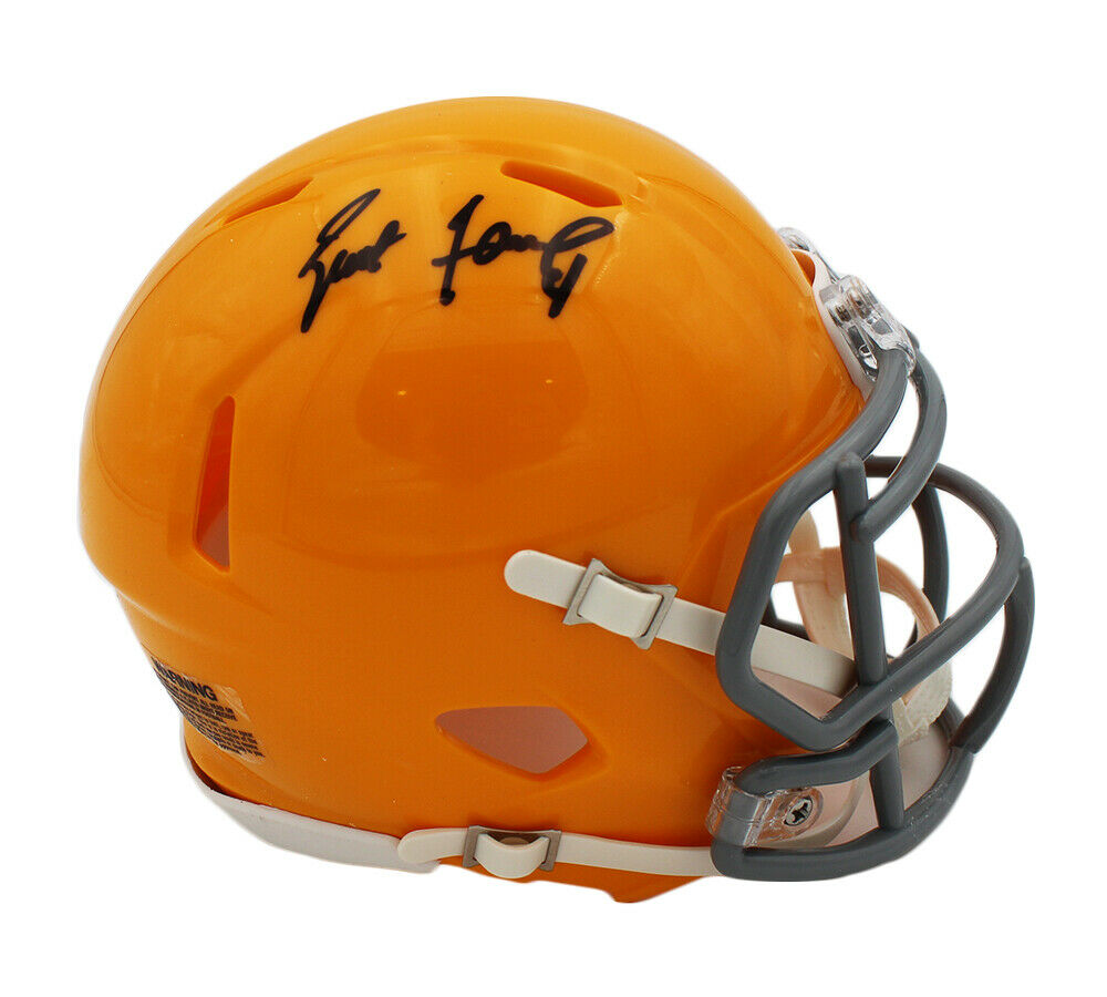 A Green Bay Packers Speed 1950's Throwback NFL Mini Helmet hand signed by Brett Favre. The item and signature are in excellent condition. A 20 year veteran of the NFL, Brett is a Super Bowl Champion, 11x Pro Bowler, 3x AP NFL Most Valuable Player, 4x NFL passing touchdowns leader, and 2x passing yards leader. His number, 4, has been retired by both the Green Bay Packers and the Southern Miss Golden Eagles. Brett was inducted into the Pro Football Hall of Fame in 2016. AUTHENTICATION: The item is accompanied by a Brett Favre Exclusive Certificate of Authenticity - Brett Favre Exclusive Serial Numbered and Databased Hologram - Picture of Brett from the signing