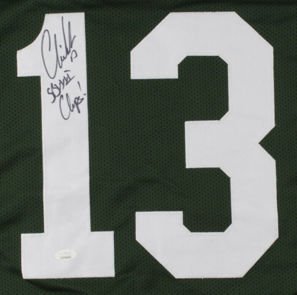 Custom on-field jersey. Everything is sewn on, size XL. Jersey has been hand-signed in black felt-tip pen by Chris Jacke. The autograph includes an official James Spence Authentication (JSA) hologram and matching COA for authenticity purposes. The signing of this item was witnessed by JSA.Authentication: JSA COA