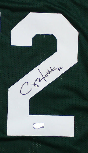 A Green Bay Custom Green Jersey hand signed by Clay Matthews. The item and signature are in excellent condition. Clay is a former outside linebacker who played for the Green Bay Packers. He is a Super Bowl Champion, 6x Pro Bowler & a Butkus Award winner. AUTHENTICATION: Your item is tagged with a SmarTag powered by Prova Technology, which gives you digital access to your items authentication records, which includes a proof picture from the signing.
