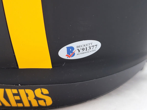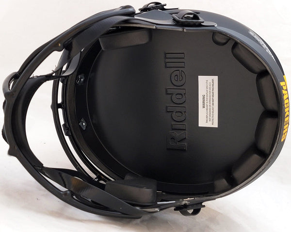 This is a Green Bay Packers Eclipse Black Full Size Speed Replica Helmet that has been hand signed by Davante Adams. The Eclipse helmets are very delicate and often have some marks or scratches on them. There is a smudge in the signature as shown. This item has been certified authentic by Beckett Authentication (BAS) and comes with their tamper-proof sticker. Beckett Authentication has recently changed their physical certificate card policy where they no longer match their tamper-proof sticker with a physical certificate. If the item features a Beckett Authenticated QR Code, the item does NOT come with a matching certificate. The tamper-proof sticker holds the value in the authentication process while the certificate does not. A certificate can be printed on Beckett's website for the matching authentication number.