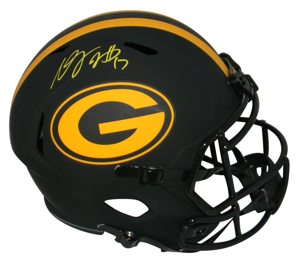 Davante Adams, former Pro Bowl wide receiver for the Green Bay Packers, has hand signed this Packers Riddell Speed Eclipse full-size replica helmet at a private signing. This item comes with a certificate of authenticity (COA) from Beckett Authentication Services and was signed in the presence of one of their representatives. You will receive a serial-numbered COA along with a matching serial-numbered sticker on the helmet. The authenticity can be verified online by entering the serial number.Item pictured may not be the exact item you will receive. It will be similar quality, and we guarantee your satisfaction.