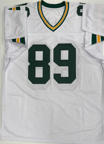 Custom Replica Green Bay Packers Away White Jersey hand signed by Green Bay Packers Legend DAVE ROBINSON. The signature is Mint in Silver Paint Pen and includes the inscriptions "HOF 2013". This jersey was signed at a public signing with us in 2013 and would make a great addition to any Packers collection! This jersey is size XL and all letters and numbers are sewn in This autograph is guaranteed to be 100% authentic and will include a COA from JSA (James Spence Authentication) with serial numbered sticker.