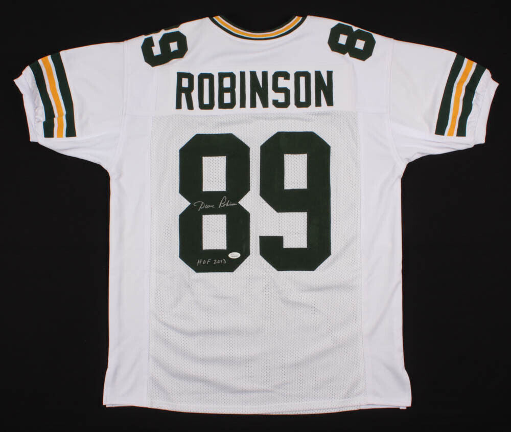 Custom on-field style jersey. Everything is sewn on, size XL. Hand-signed and inscribed in silver felt-tip pen by Dave Robinson (Redskins, HOF). The autograph includes an official James Spence Authentication (JSA) hologram and matching COA for authenticity purposes. The signing of this item was witnessed by JSA.Authentication: JSA COA