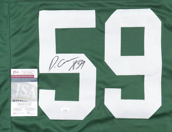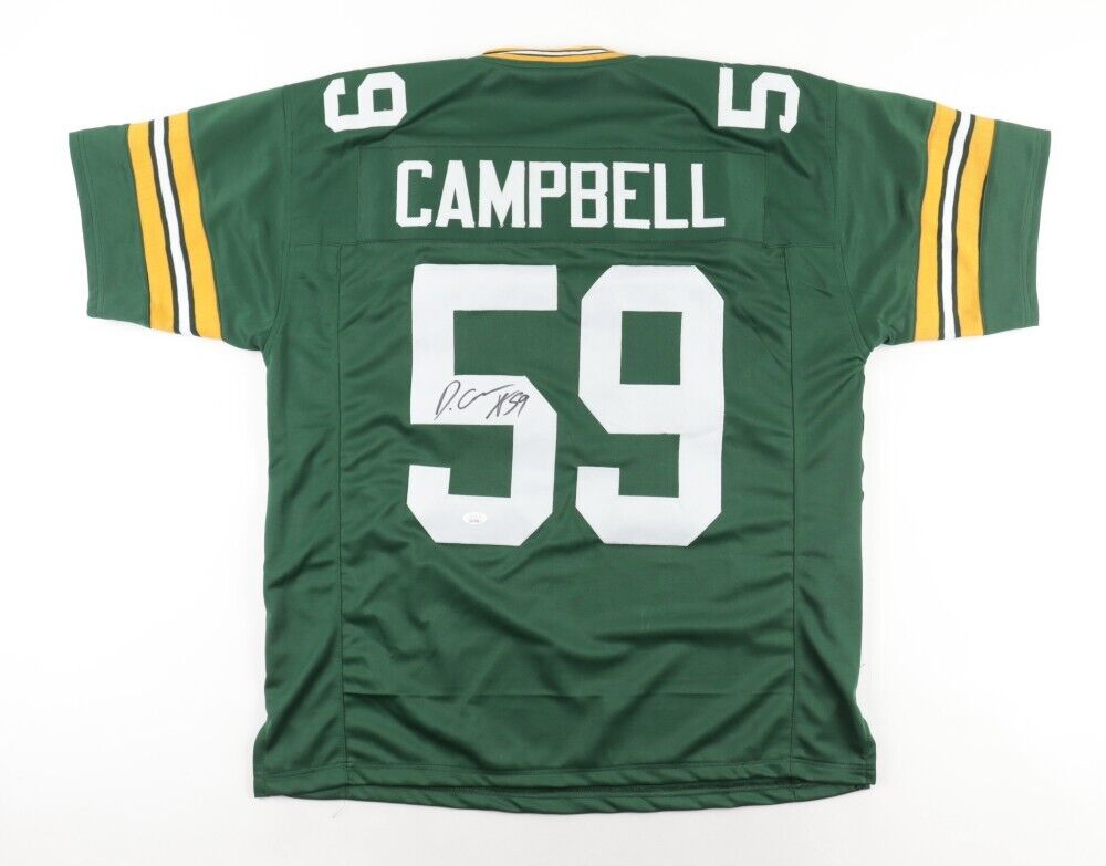 Custom on-field style jersey. Everything sewn on, size XL. Hand-signed by De'Vondre Campbell.The lot / autograph(s) includes an official James Spence Authentication (JSA) hologram and matching COA for authenticity purposes. The signing of this item was witnessed by JSA.Authentication: JSA COACustom on-field style jerseys are a more affordable option for autograph seekers. These jerseys do not have any brand name or tags and are made in the Philippines. They feature stitched on names and numbers and are made to look very similar to the on-field jerseys that the players wear. These custom jerseys are very commonly used in the memorabilia industry.
