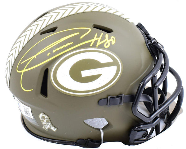 Donald Driver Autographed Green Bay Packers Salute to Service Speed Mini Helmet-Beckett W Hologram *Yellow This is a Donald Driver of the Green Bay Packers hand autographed Riddell Football Salute to Service Speed mini helmet. This item has a Beckett Witnessed Authentication, which comes with a numbered hologram and a QR code for verification. You can view this item on the Beckett website and it shows when and where the item was signed. It was signed either at a public autograph appearance or a private signing. This is a stock photo of the item. Although you may not receive this exact item, the item you receive is virtually identical, brand new, and in great shape.
