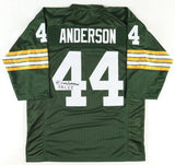 This autographed Custom on-field style Adult XL jersey has been personally hand-signed by Donny Anderson ("S.B.C. I & II" inscription) of the Green Bay Packers.This autograph is certified by James Spence Authentication's (JSA) Witnessed Protection Program. That means that a JSA representative was present when this item was signed. It comes with the numbered hologram and matching Certificate of Authenticity.Custom on-field style jerseys are a more affordable option for autograph seekers. These jerseys do not have any brand name or tags and are made in the Philippines. They feature stitched on names and numbers and are made to look very similar to the on-field jerseys that the players wear. These custom jerseys are very commonly used in the memorabilia industry.